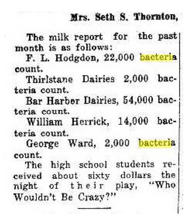 Milk report showing bacteria counts (F. L. Hodgdon)